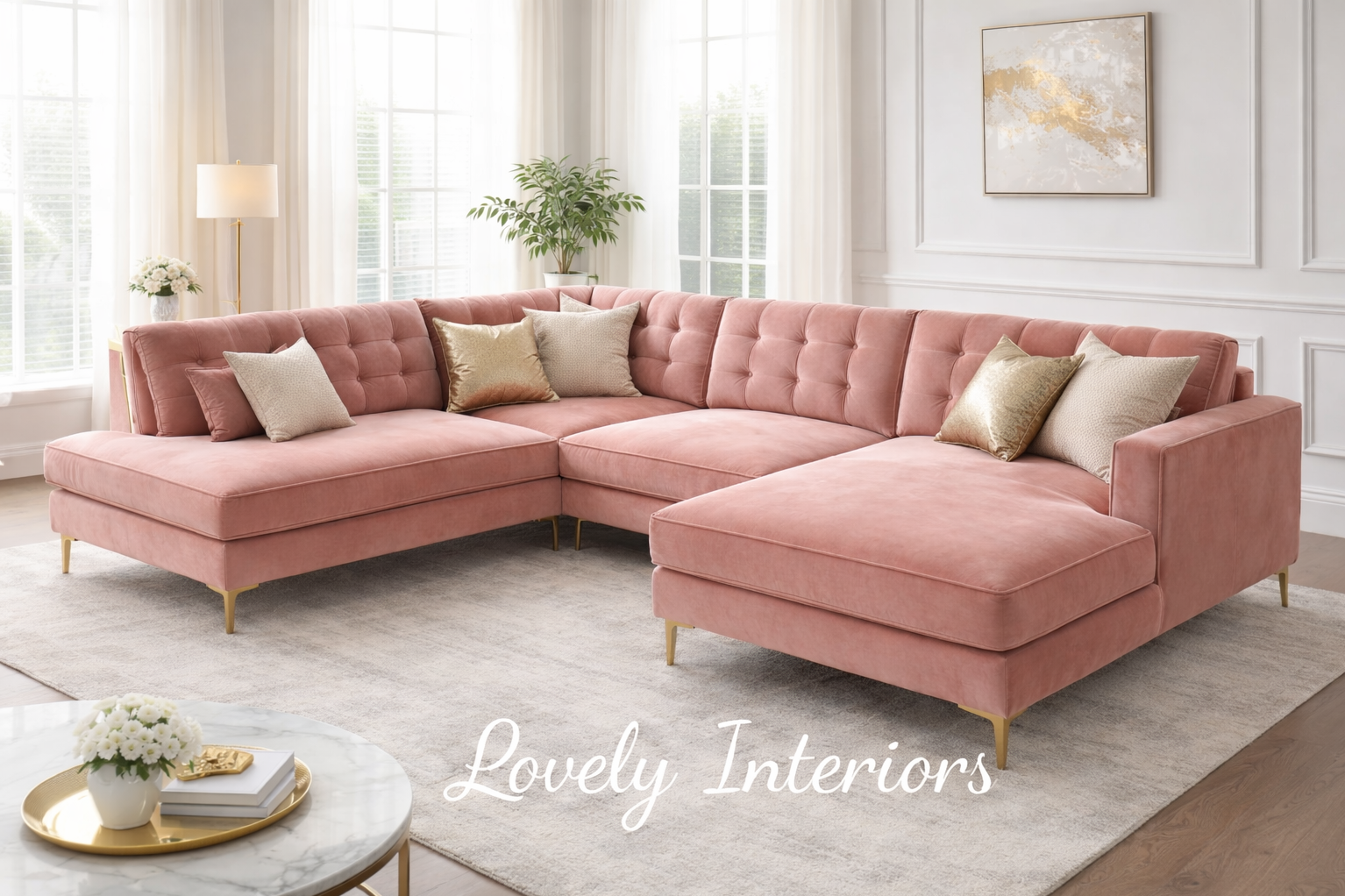 Add a touch of elegance and luxury to your living space with this beautifully crafted 9×6 L-shape sofa in a stunning rose gold shade. Designed to impress, this sofa features soft velvet upholstery, a tufted backrest, and plush seating that offers superior comfort for everyday lounging and entertaining guests. The modern L-shape layout maximizes seating while maintaining a sleek, sophisticated look. Accented with gold-finished metal legs, it perfectly complements contemporary and premium interiors. The warm rose gold tone adds charm and richness, making it a statement piece in any living room.