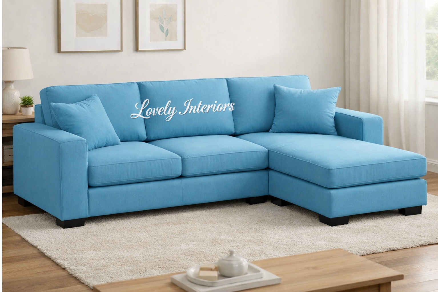 Bring freshness and modern elegance into your living space with this stunning sky-blue L-shape sofa set by Lovely Interiors. Designed to offer both style and comfort, the sofa features clean lines, plush cushioning, and a spacious layout that’s perfect for family gatherings or relaxed evenings.